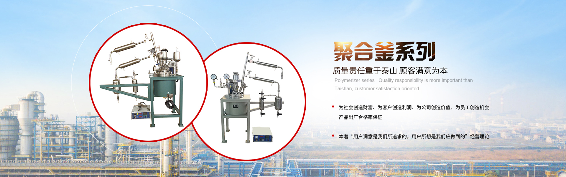 反應釜由反應容器、攪拌器及傳動系統(tǒng)、冷 卻裝置、安 全裝置、加熱爐等組成.酯化縮聚反應釜是一種將酯化與縮聚同時完成的反應裝置,在酯化縮聚反應釜做酯化反應時通過精餾柱、填料塔、冷凝器將酯化反應生產的水分及低分子物分離出去;在酯化縮聚反應釜做縮聚反應時將酯化反應閥門關閉將縮聚閥門打開,將溫度調到較高溫度條件下通過攪拌系統(tǒng)將許多相同或不相同低分子物質相互作用,生成高分子物質,同時將析出小分子通過冷凝器接收罐將其分離收集起來。酯化縮聚反應釜廣泛應用在有 機合成、化工化纖等領域。